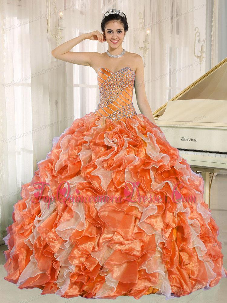 Beaded and Ruffles Custom Made For 2013 Orange Sweetheart Modest Quinceanera Dresses