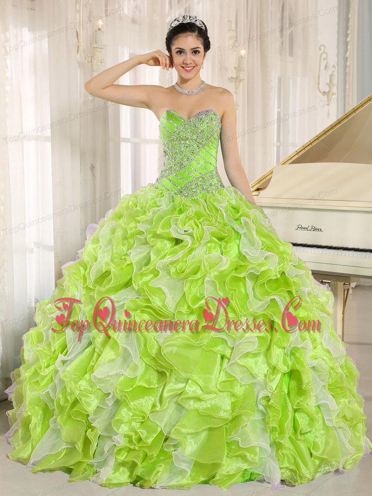 Beaded and Ruffles Custom Made For Yellow Green New Style Quinceanera Dresses