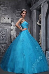Beaded Appliques Ball Gown Quinceanera Dresses Baby Blue