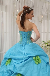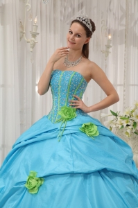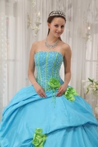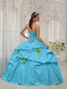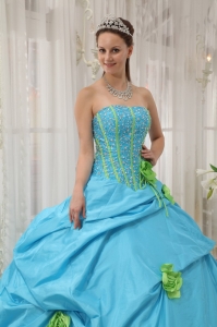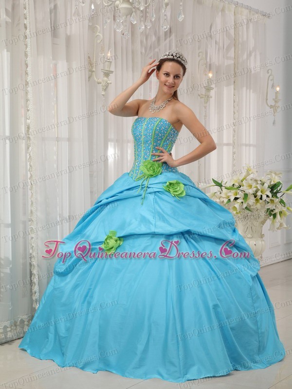 Beaded Baby Blue Quinceanera Dress Lime Green Flowers