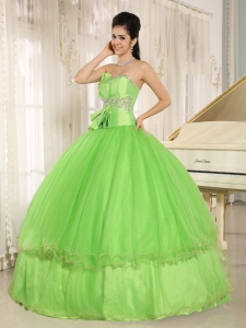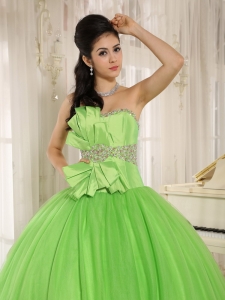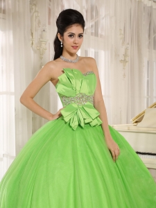 Beaded Bowknot Spring Green Quinceanera Dress for Sweet 15