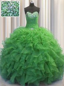 Beaded Bust Organza Sleeveless Floor Length Quinceanera Gowns and Beading and Ruffles