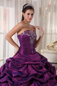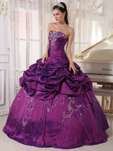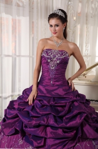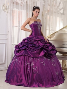 Beaded Embroidery Eggplant Purple Quinceanera Dress Strapless