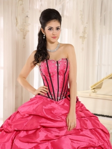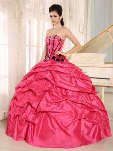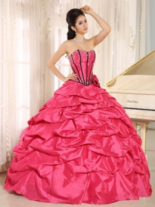 hot pink beaded and hand made flowers quinceanera dress with pick ups for custom made,