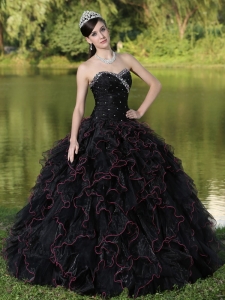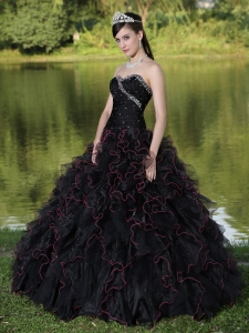 Beaded Sweetheart and Black Ball Gown 2013 Quinceanera Dress