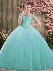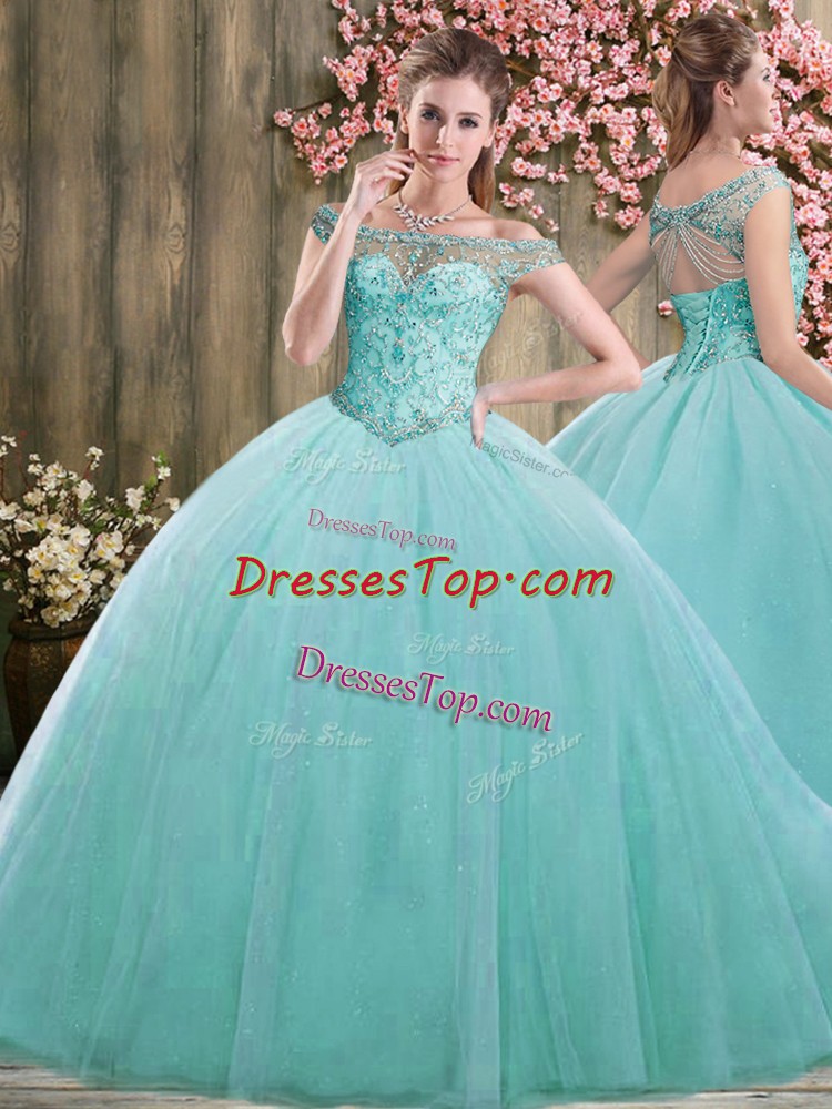Beading 15th Birthday Dress Blue Lace Up Sleeveless Floor Length