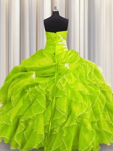 Beading and Appliques and Ruffles Quinceanera Dresses Lace Up Sleeveless Floor Length