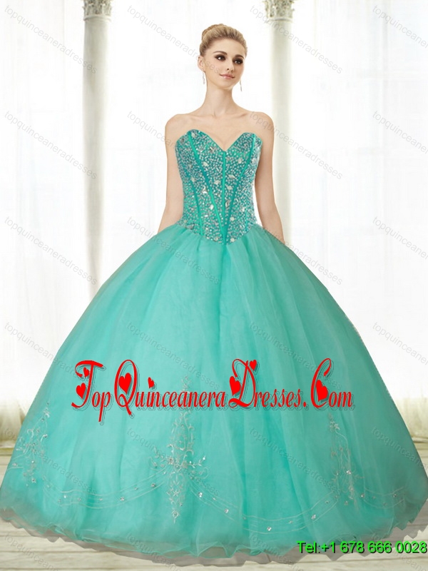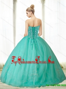 Beading and Appliques Turquoise Sweetheart Vestidos de Quinceanera Dresses for 2015