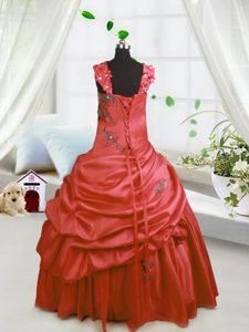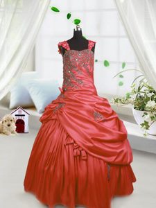 Beading and Pick Ups Pageant Dress Womens Watermelon Red Lace Up Sleeveless Floor Length