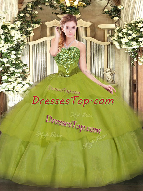 Beading and Ruffled Layers Vestidos de Quinceanera Olive Green Lace Up Sleeveless Floor Length