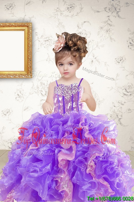 Beading and Ruffles and Sequins Pageant Gowns For Girls Multi-color Lace Up Sleeveless Floor Length