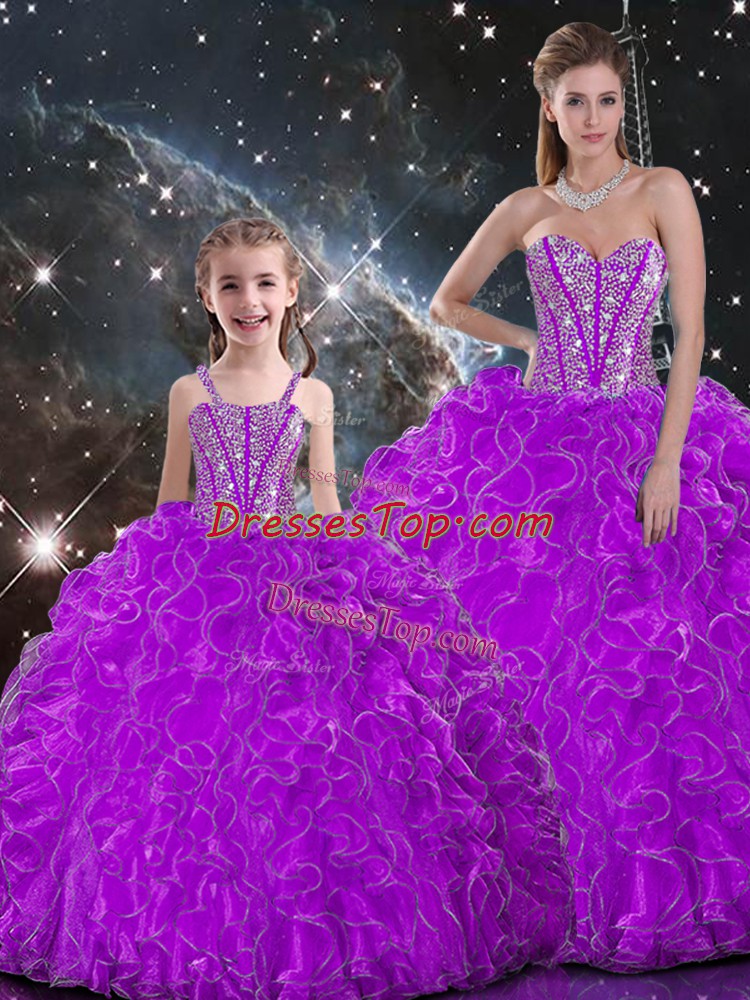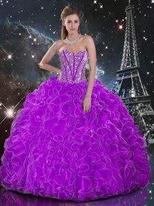 Beading and Ruffles Ball Gown Prom Dress Purple Lace Up Sleeveless Floor Length