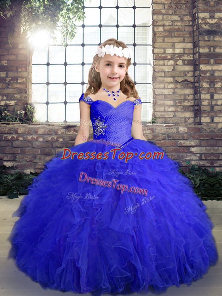 Beading and Ruffles Kids Formal Wear Blue Lace Up Sleeveless Floor Length