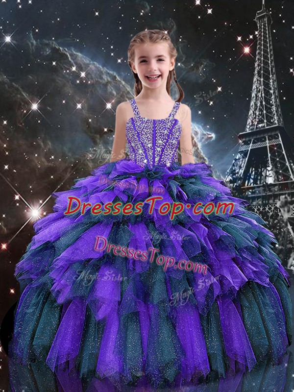 Beading and Ruffles Pageant Dress Toddler Eggplant Purple Lace Up Sleeveless Floor Length