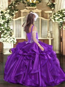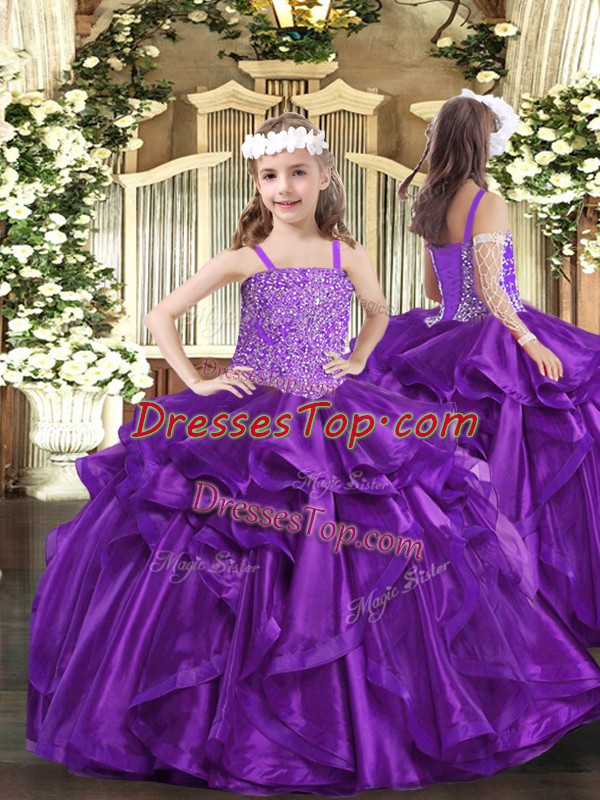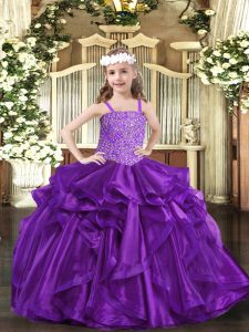 Beading and Ruffles Pageant Gowns For Girls Purple Lace Up Sleeveless Floor Length