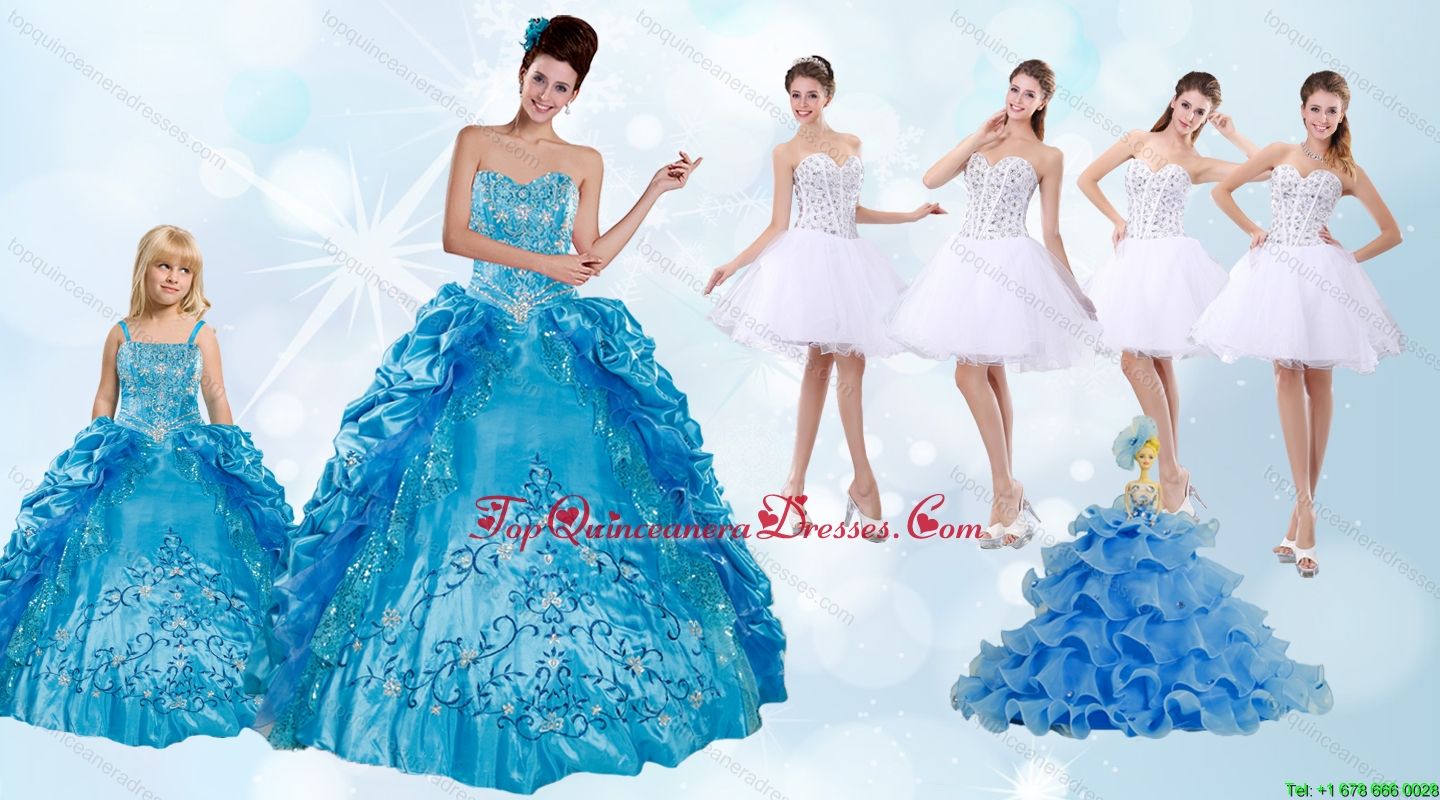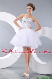 Beading and Ruffles Quinceanera Dress and Rhinestones White Short Dama Dresses and Spaghetti Straps Embroidery Little Girl Dress