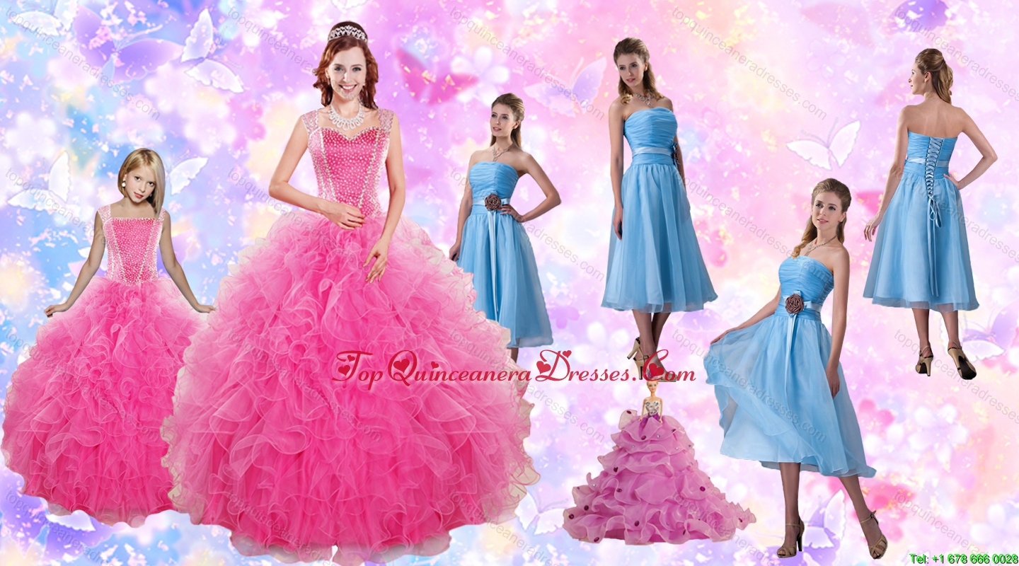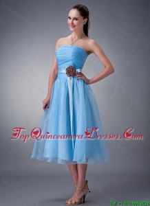 Beading and Ruffles Quinceanera Dress and Strapless Knee Length Baby Blue Dama Dresses and Rufles Cute Flower Girl Dress