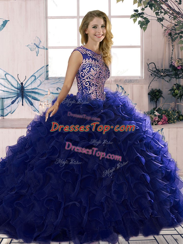 Beading and Ruffles Quinceanera Dress Purple Lace Up Sleeveless Floor Length