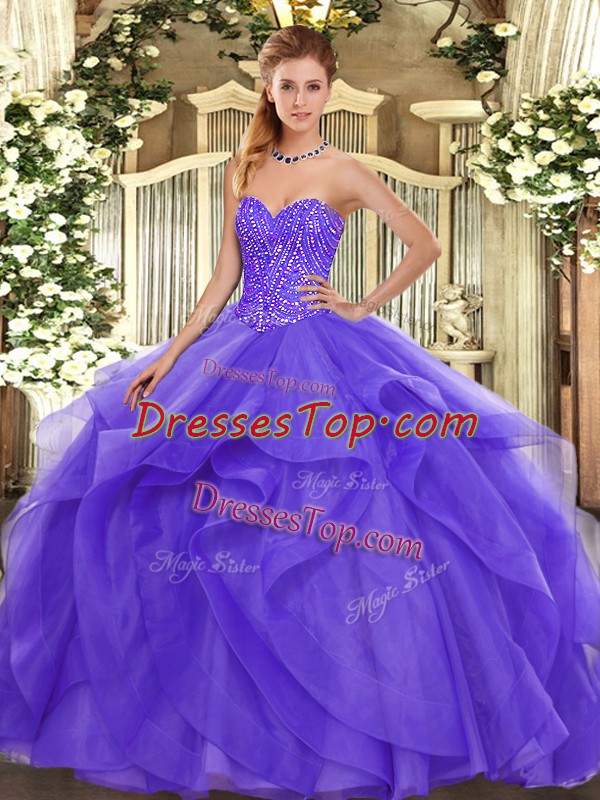Beading and Ruffles Quinceanera Dresses Lavender Lace Up Sleeveless Floor Length