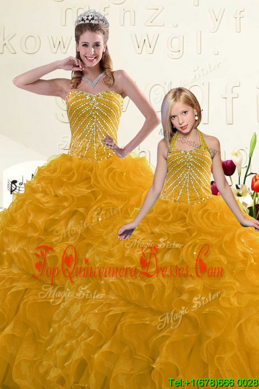 Beading and Ruffles Quinceanera Dresses Peach Lace Up Sleeveless Floor Length