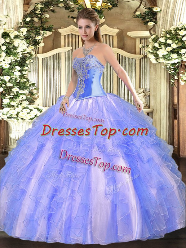 Beading and Ruffles Quinceanera Gown Blue Lace Up Sleeveless Floor Length