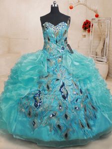Beading and Ruffles Quinceanera Gowns White Lace Up Sleeveless Floor Length