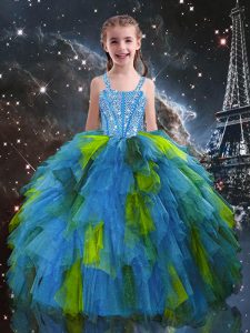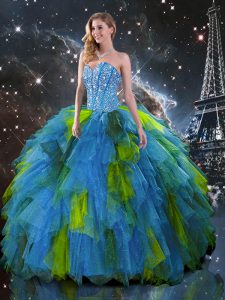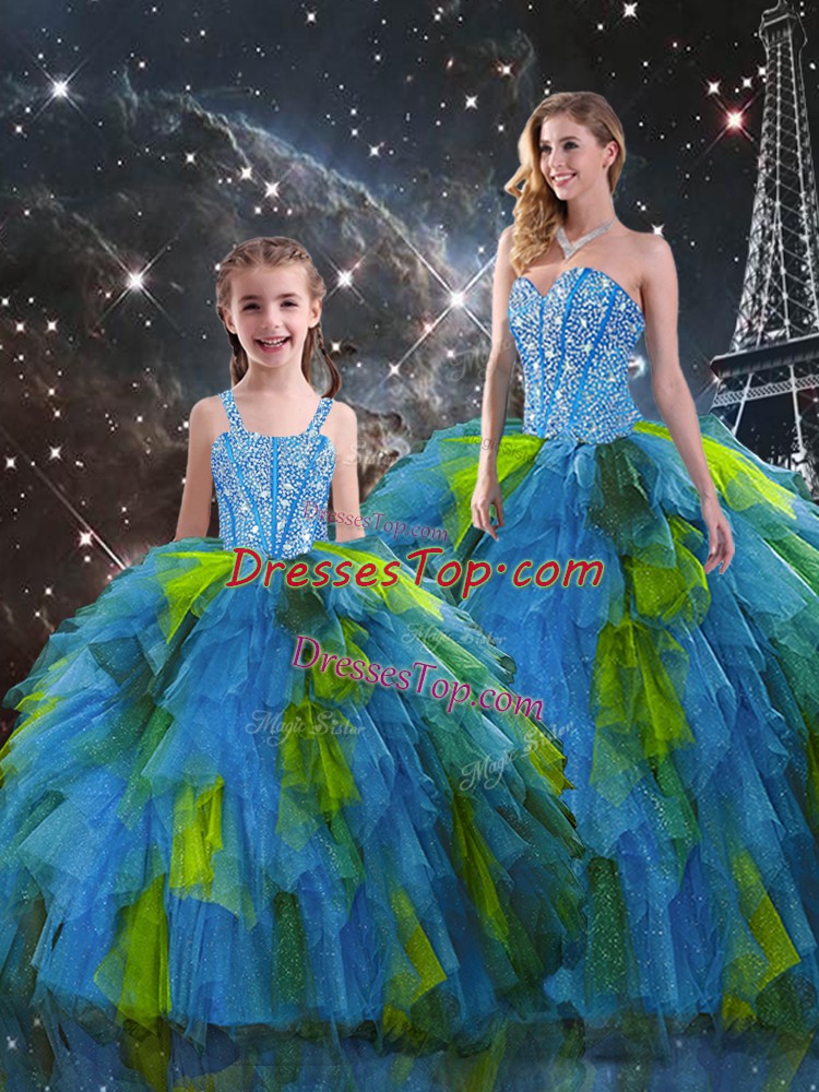 Beading and Ruffles Sweet 16 Dresses Multi-color Lace Up Sleeveless Floor Length