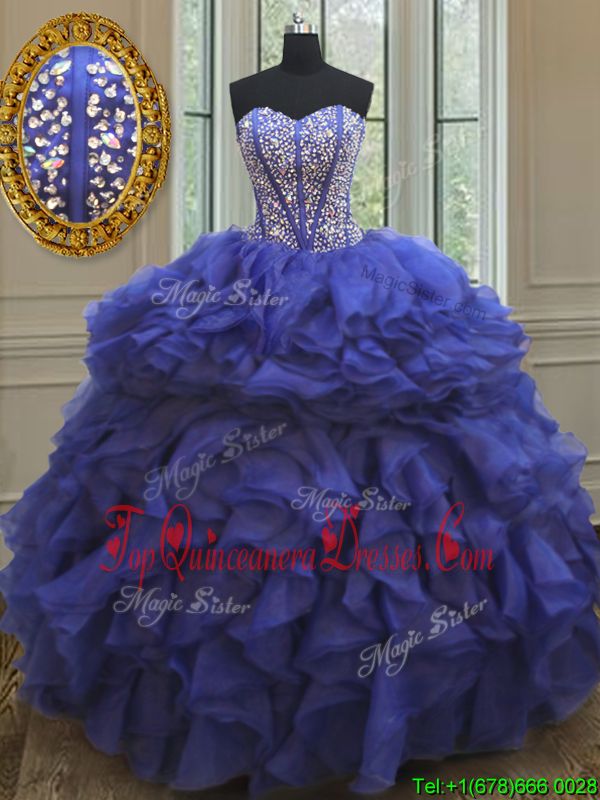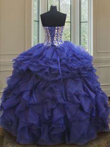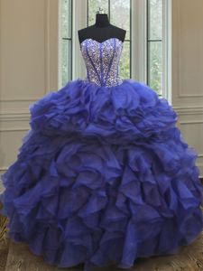 Beading and Ruffles Sweet 16 Quinceanera Dress Royal Blue Lace Up Sleeveless Floor Length