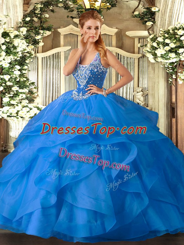 Beading and Ruffles Vestidos de Quinceanera Baby Blue Lace Up Sleeveless Floor Length