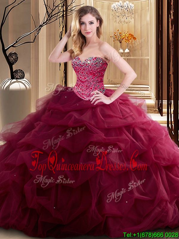 Beading and Ruffles Vestidos de Quinceanera Burgundy Lace Up Sleeveless Floor Length