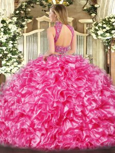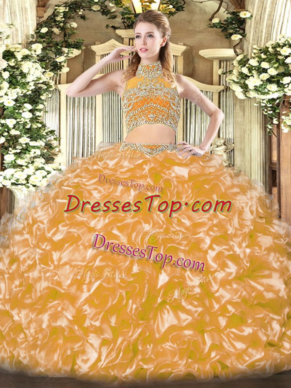 Beading and Ruffles Vestidos de Quinceanera Gold Backless Sleeveless Floor Length