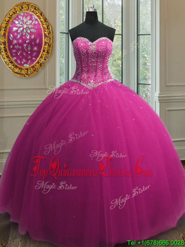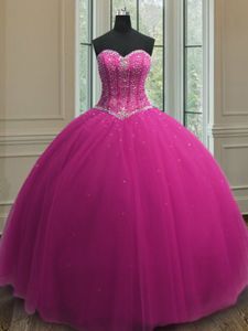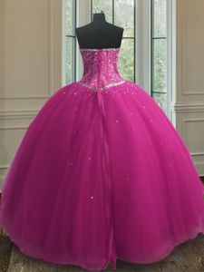 Beading and Sequins Quinceanera Gown Fuchsia Lace Up Sleeveless Floor Length