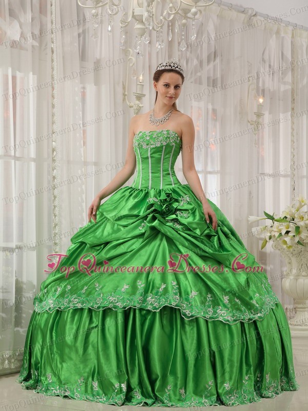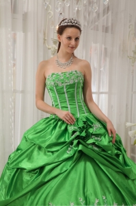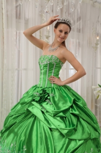 Beading Applique Quince Dress Strapless Taffeta Spring Green