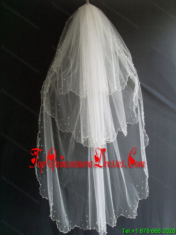 Beading Decorate Tulle Three Layers Graceful Wedding Veil