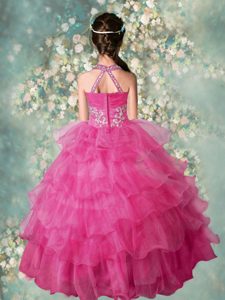 Beading High School Pageant Dress Rose Pink Side Zipper Sleeveless Floor Length