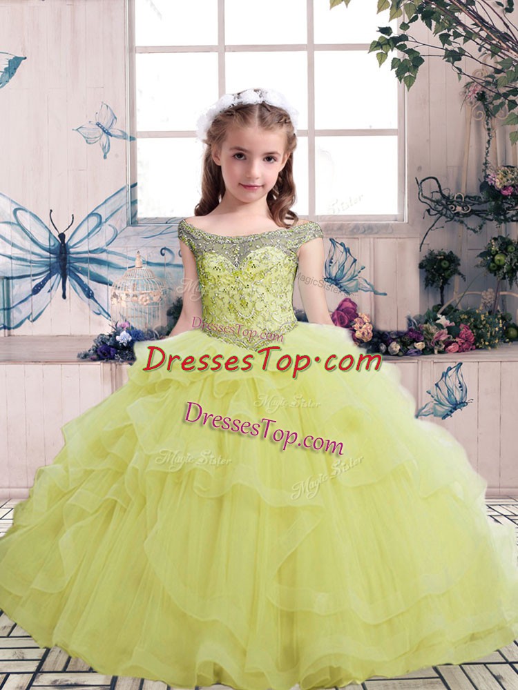 Beading Kids Formal Wear Yellow Lace Up Sleeveless Floor Length