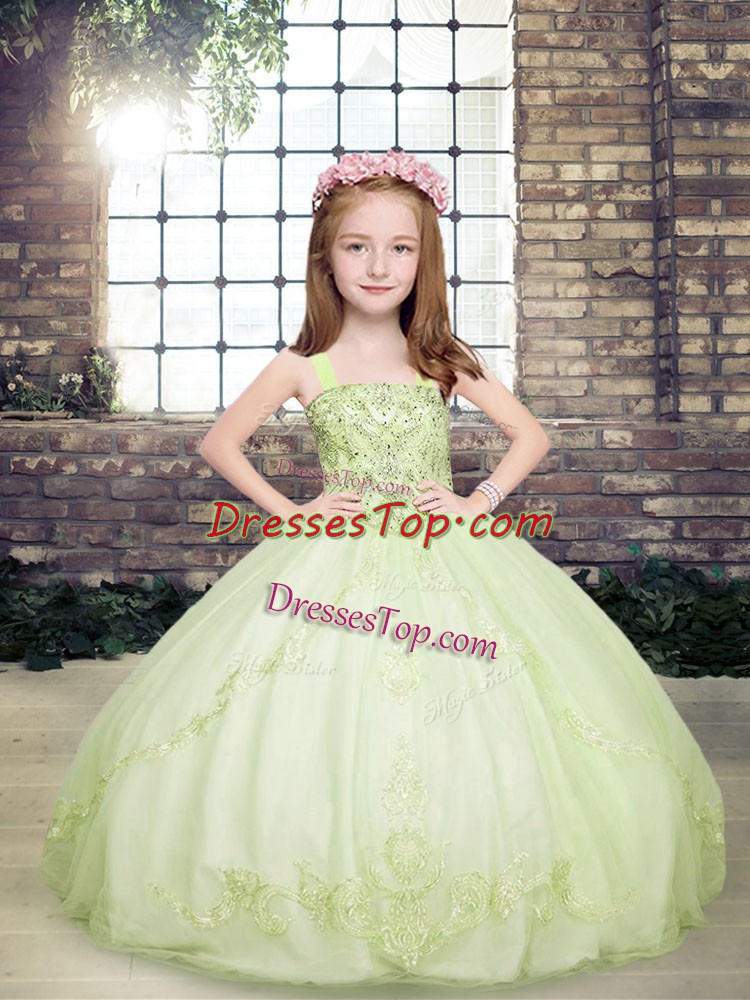 Beading Little Girls Pageant Dress Yellow Green Lace Up Sleeveless Floor Length