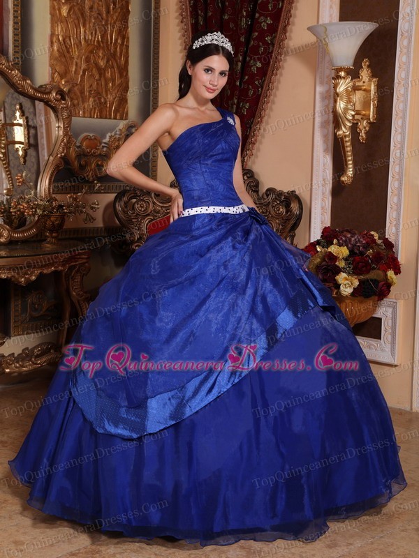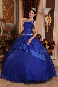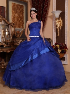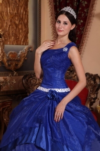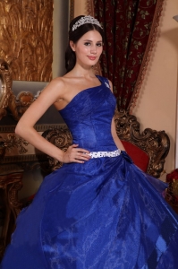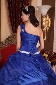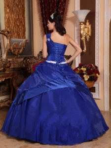 Beading One Shoulder Royal Blue Ball Gown Quinceanera Dress