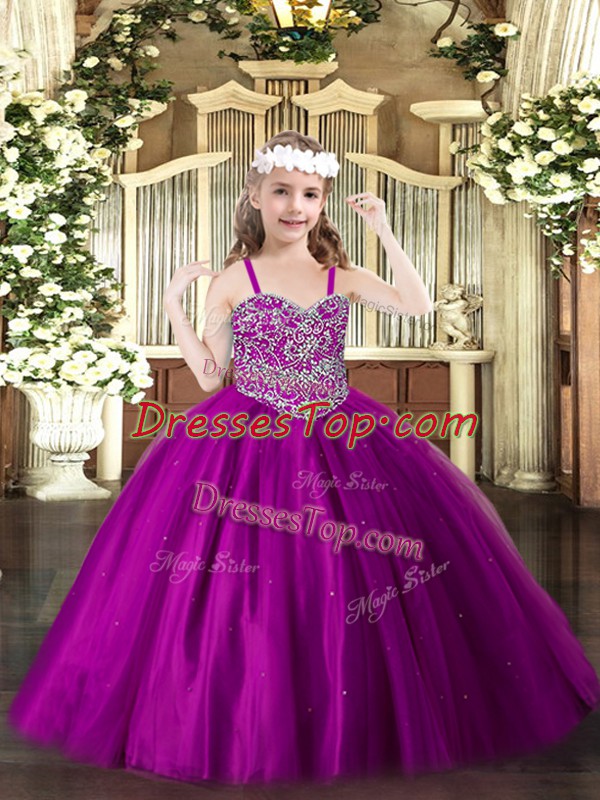Beading Pageant Dresses Fuchsia Lace Up Sleeveless Floor Length