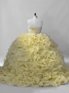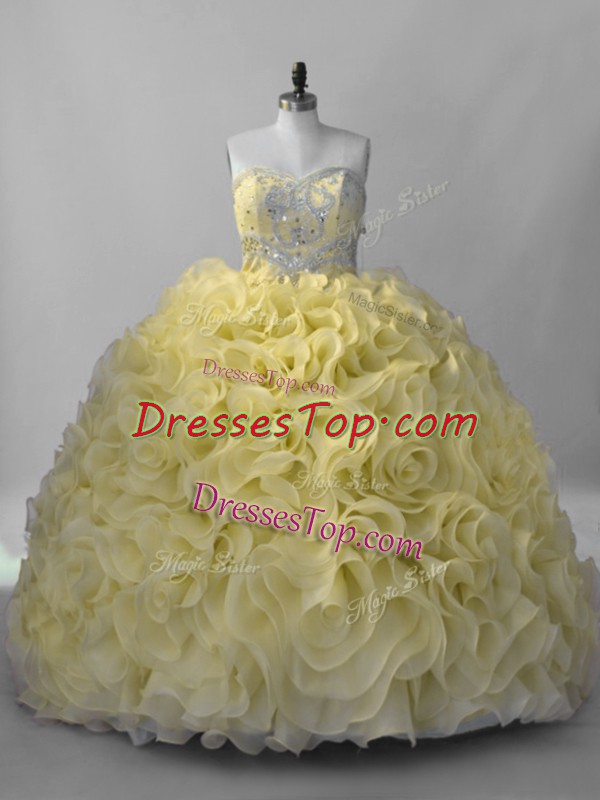 Beading Quince Ball Gowns Yellow Lace Up Sleeveless