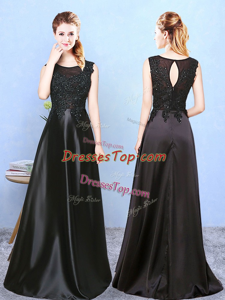 Beading Quinceanera Court Dresses Black Zipper Sleeveless Floor Length