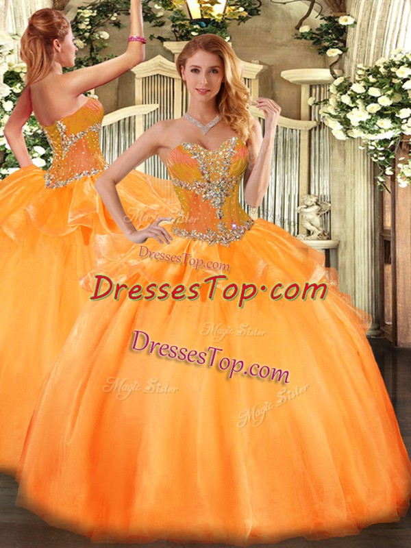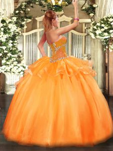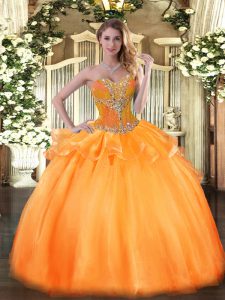 Beading Quinceanera Dress Orange Lace Up Sleeveless Floor Length