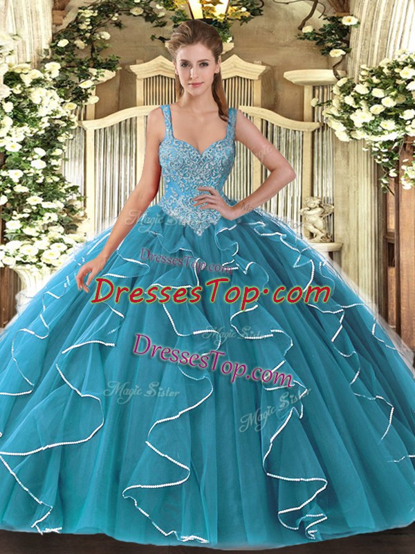 Beading Quinceanera Dress Teal Lace Up Sleeveless Floor Length