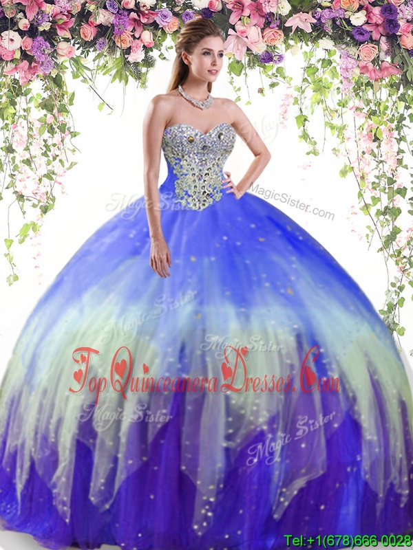 Beading Quinceanera Dresses Multi-color Lace Up Sleeveless Floor Length
