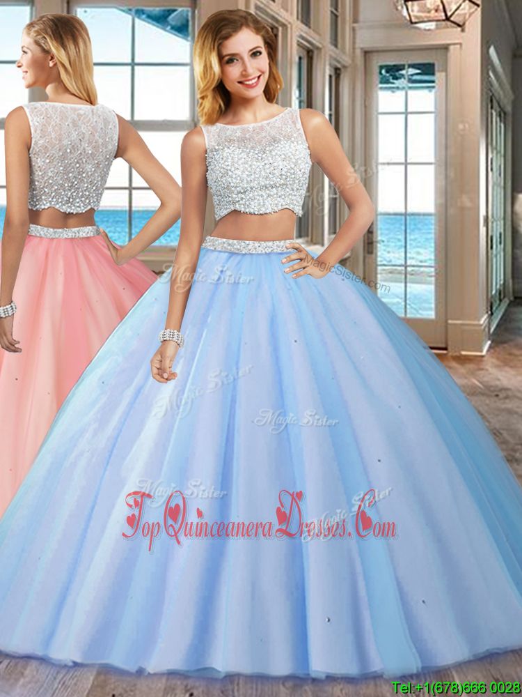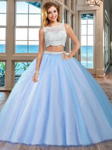 Beading Quinceanera Gown Blue Side Zipper Sleeveless Floor Length