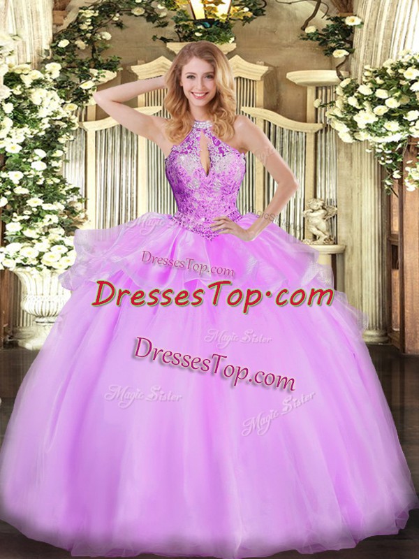 Beading Sweet 16 Dresses Lilac Lace Up Sleeveless Floor Length