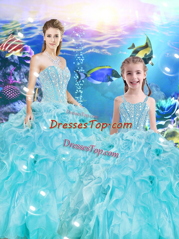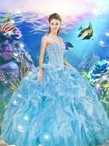 Beauteous Aqua Blue Sweet 16 Dresses Military Ball and Sweet 16 and Quinceanera with Beading and Ruffles Sweetheart Sleeveless Lace Up