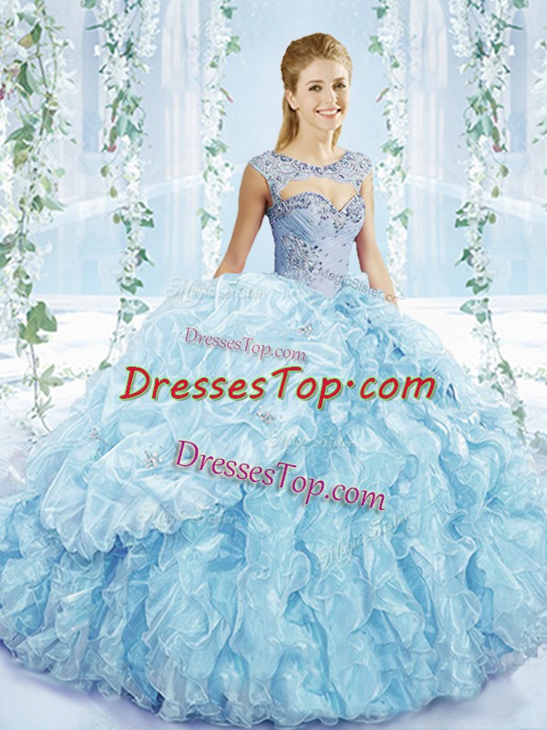 Beauteous Ball Gowns Sleeveless Blue Ball Gown Prom Dress Lace Up
