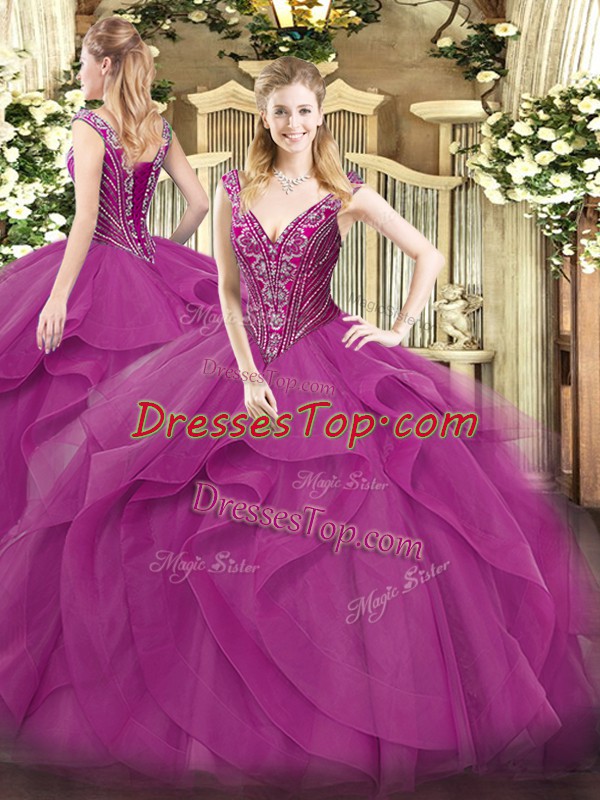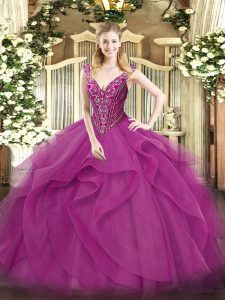 Beauteous Ball Gowns Sweet 16 Dresses Lilac V-neck Tulle Sleeveless Floor Length Lace Up