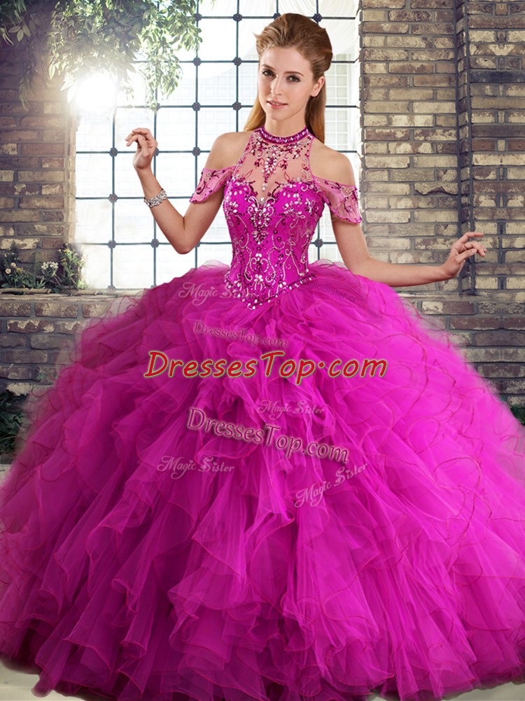 Beauteous Floor Length Ball Gowns Sleeveless Fuchsia Ball Gown Prom Dress Lace Up